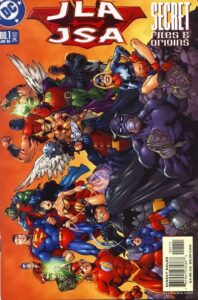 Our featured and lead images are the cover art by Carlos Pacheco and Jesús Merino for JLA / JSA Secret Files & Origins #1, published by DC Comics with a cover date of January 2003. The issue includes Jim Beard’s first published story, plus several character portraits by the author.
