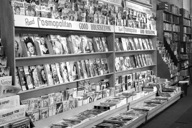 Our featured image is a magazine rack circa the winter of 1944-45, located in Vancouver, British Columbia. We’ll be running photographs of vintage newsstands and magazine racks all week. Special thanks to ThePulp.Net for sharing their collection of pulp photos from the early 20th century with us.