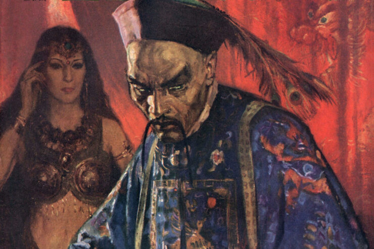 Our featured image is excerpted from Arnold Friberg’s cover art for the November 16, 1940 issue of Liberty, illustrating Sax Rohmer’s novel, “Fu Manchu and the Panama Canal,” a 12-part serial that was later published in book form as The Island of Fu Manchu. The story involves Fu Manchu’s attempts to disrupt the United States’ navy during World War II by launching attacks from a hidden stronghold in the Caribbean.