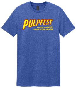 But wait!!! Also debuting at PulpFest 2025 will be Streetlight Printing’s PulpFest t-shirts. Click the link in our top menu and order one or pick one up at the convention. They’re available in a variety of sizes in black or royal blue with the PulpFest logo across the chest.