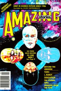 The potential for wide appeal in Amazing Stories was evident from the attention given to William Wu’s story, “Wong’s Lost and Found Emporium,” from the May 1983 issue. This piece was nominated not only for the Hugo and Nebula Awards, but also for the World Fantasy Award. It was also converted into a screenplay and produced as an episode of The New Twilight Zone television show. Two other stories by Wu, set in the Emporium, also appeared in Amazing Stories, most recently “Missing Person” in the April 1992 issue.